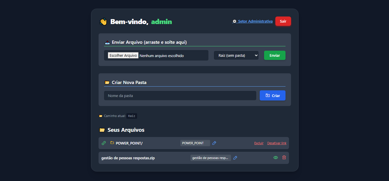 Sistema online para upload, organização e compartilhamento de arquivos em nuvem.