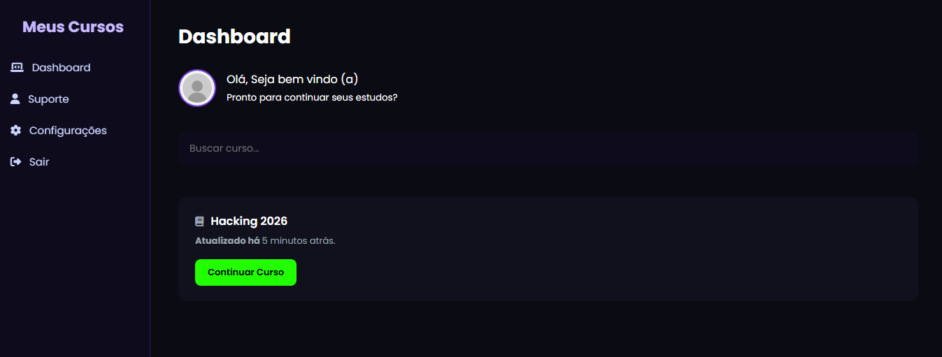 Plataforma de cursos online com aulas em slides, quizzes automáticos e controle de acesso.